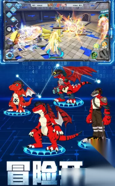《数码宝贝相遇》游戏在原数码兽的基础上,对整体的类型进行了丰富的拓展,并且全新的设置出了更为焕然一新的孵化、培育的玩法系统,每位数码兽,都根据变身的特性,打造出了多套刺激感官的战斗技能,另外游戏中延伸出来了中包含了不同玩法和功能的模板,把与四大反派之间的斗争,新意盎然的设定成了关卡制的形式。 》》》》》#数码宝贝相遇#《《《《《 4、《数码暴龙大冒险》
