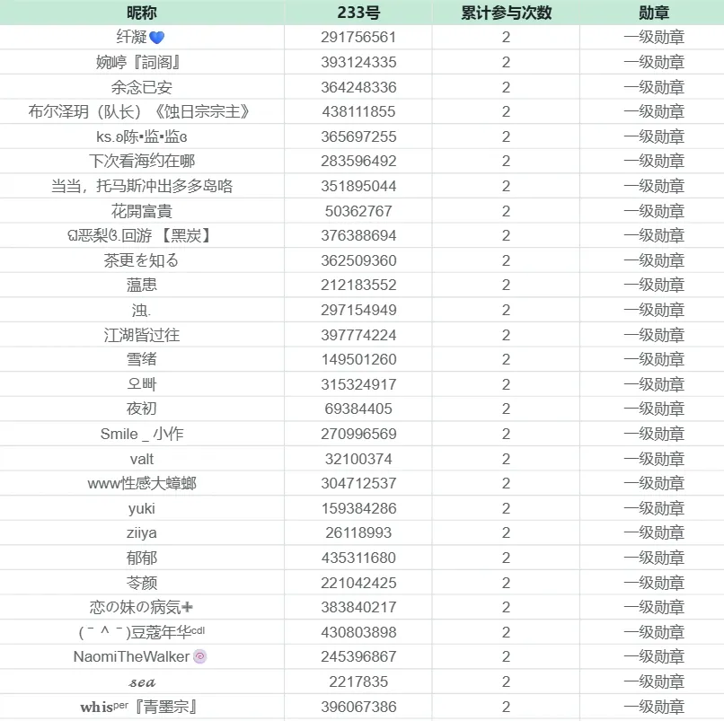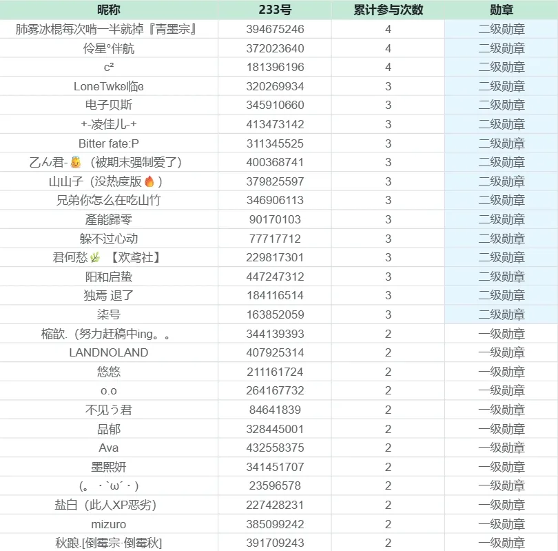 以下是已经累计3次及以上参与【绘梦纪行】系列活动成功获得二级勋章的创作者!