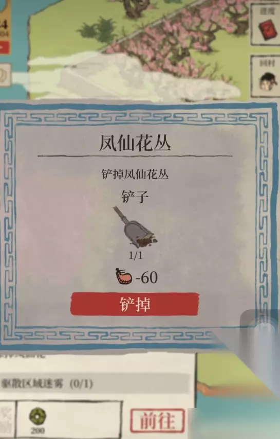 获得卦纸后,玩家需将其交给桥头站立的特定NPC,如李宝家或一位白衣女性角色,以驱散地图上的迷雾。驱散迷雾是解锁铲子所在地点的必要条件,一旦迷雾清除,玩家就能通过桥梁进入先前不可达的区域。这个步骤要求玩家准确找到NPC并完成道具交换,否则无法继续前进到铲子所在位置。 驱散迷雾后,玩家过桥即可在颜料店前方的小树林中找到铲子,小树林通常由几棵深绿色松树组成,点击后即可获取道具。小树林的位置相对隐蔽,但驱散迷雾后会变得可见,玩家只需简单交互就能获得铲子。玩家还可以在冯道士的算卦摊处使用铜钱、铁矿石和木料等游戏资源直接兑换铲子,但这需要消耗较多物资,不如活动获取方式经济。