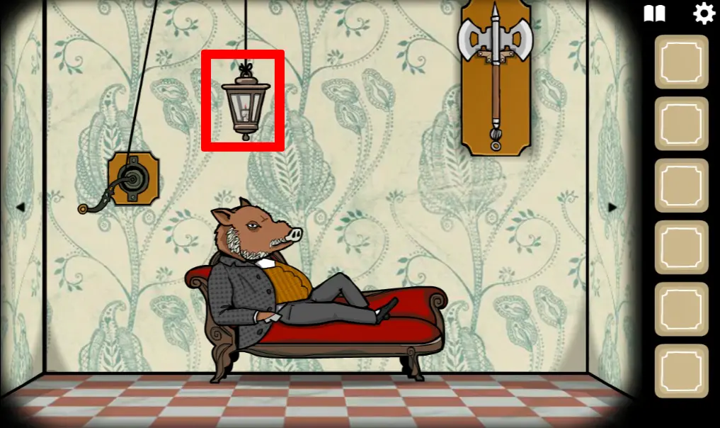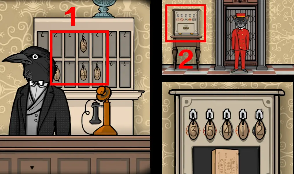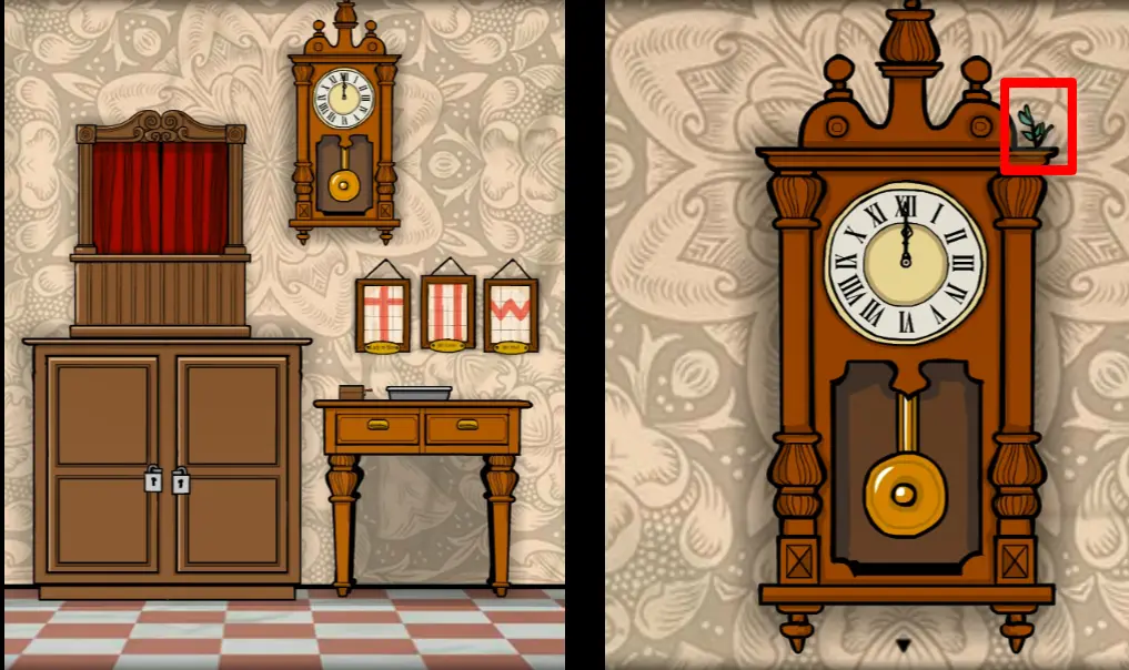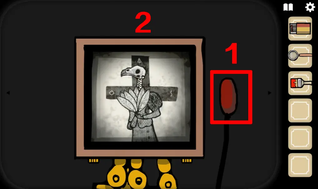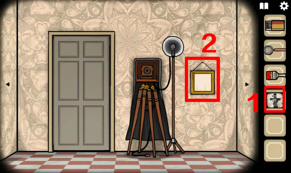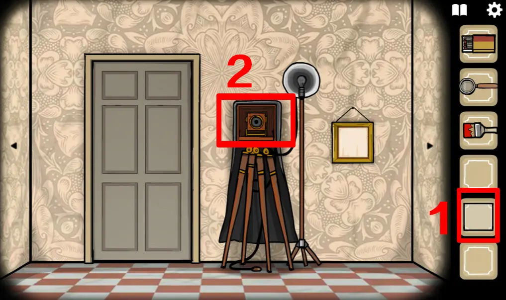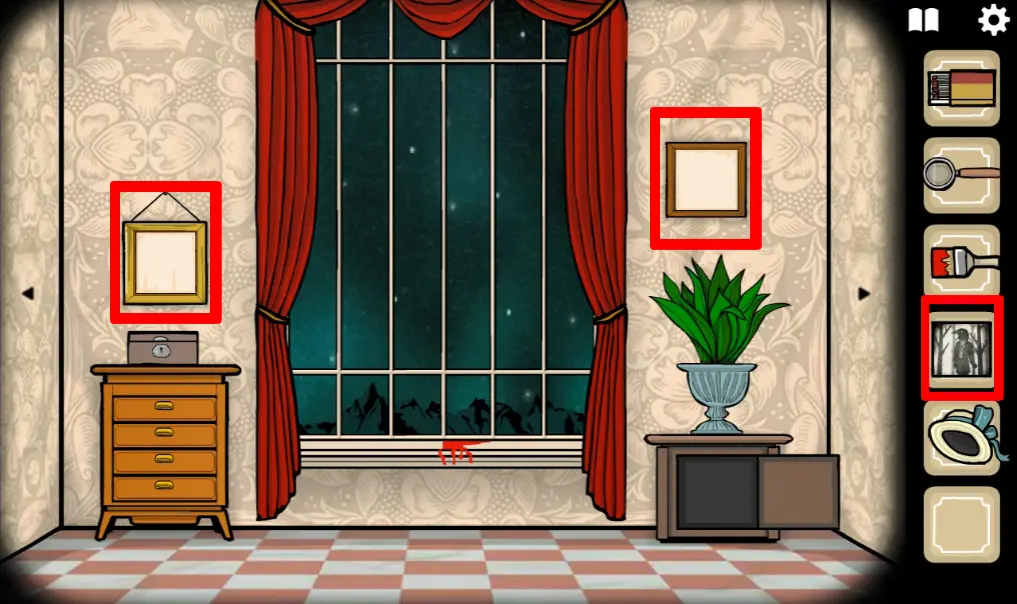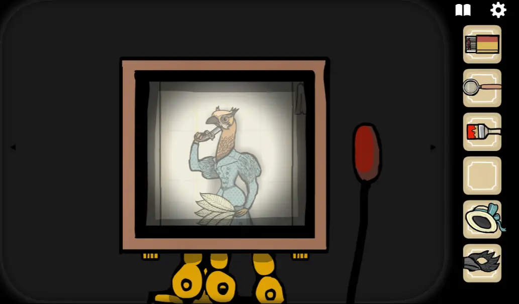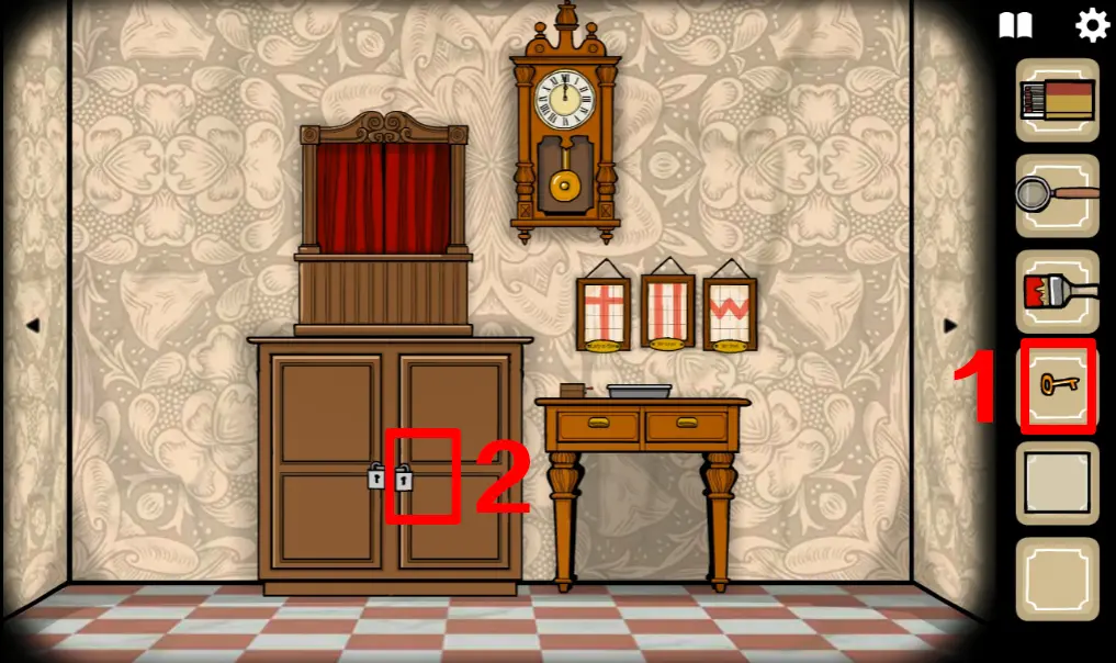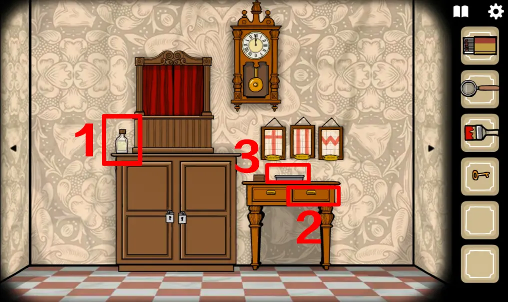 这次来到一楼,正对电梯那间房ROOM3野鸡小姐房间,往左切换场景,左边柜子里分别拿到火柴、放大镜、刷子