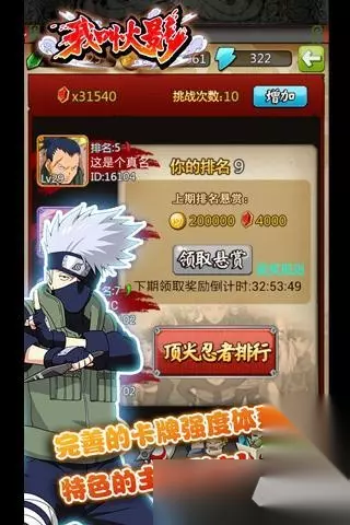 在《我叫火影》中,你将扮演一名刚刚加入忍者村的新手忍者。随着剧情的深入,你将逐步解锁更多的玩法,揭开隐藏在忍者世界的秘密。这篇攻略将带你了解游戏主线玩法,让你能够快速上手,成为独当一面的强大忍者。 【第一篇章】忍者成长手册 忍者角色选择与培养 游戏开始时,玩家需要选择自己的忍者角色。不同的角色有着不同的技能、属性和成长方向。选择好角色后,玩家可以利用战斗获得的经验值来提升等级,增强角色的战斗力。此外,玩家还可以通过装备系统来强化角色属性,使角色变得更加强大。 任务系统详解 游戏中的任务分为日常任务、周常任务、限时任务和剧情任务四大类。日常任务每天刷新一次,完成任务可以获得大量经验值和金币奖励;周常任务每周刷新一次,难度较高,但奖励也更为丰厚;限时任务则会在特定时间内开启,通常伴随着丰富的活动奖励;剧情任务则是游戏的主线任务,玩家需要跟随剧情的发展,一步步解开忍者世界的秘密。 忍术系统 游戏中,每个角色都拥有独特的忍术技能。这些技能可以在战斗中发挥重要作用,如造成大量伤害、控制敌人等。玩家可以通过消耗查克拉来释放忍术,查克拉会随着时间逐渐恢复。此外,玩家还可以通过学习新的忍术来丰富自己的技能库,提高战斗效率。 【第二篇章】战斗技巧与策略 阵容搭配 在《我叫火影》中,玩家需要组建一支由多名忍者组成的队伍来进行战斗。不同忍者之间存在着属性克制关系,合理搭配阵容可以使战斗更加轻松。此外,玩家还需要考虑角色之间的配合度,例如使用治疗型忍者来为队友提供生命回复,或使用控制型忍者来限制敌人的行动。 战斗操作 游戏采用回合制战斗模式,玩家需要在限定时间内选择合适的技能进行攻击。在战斗过程中,玩家需要注意观察敌人的血量和状态,并根据实际情况调整战术。而在面对拥有强大控制技能的敌人时,则需要先解决掉对方的控制型角色。 策略运用 除了基本的操作技巧外,玩家还需要学会运用一些高级策略来提高胜率。例如,在面对强敌时,可以利用地形优势来进行伏击;或者在战斗中留一手,等待时机发动致命一击。此外,玩家还需要学会观察敌人的弱点,并针对这些弱点进行攻击,以达到事半功倍的效果。 【第三篇章】进阶玩法指南 副本挑战 游戏中设有多个副本供玩家挑战。每个副本都有不同的难度和奖励,玩家可以根据自身实力选择合适的副本进行挑战。通过副本可以获得大量的经验和装备材料,是提升角色实力的重要途径之一。 竞技场对决 竞技场是检验玩家实力的最佳场所。在这里,玩家可以与其他玩家进行一对一的较量,争夺排名。排名越高,所获得的奖励也就越丰厚。为了在竞技场中取得胜利,玩家需要不断优化自己的阵容搭配,并灵活运用各种战斗技巧。 组队副本 组队副本是一种多人合作模式,玩家需要与其他玩家共同协作才能完成挑战。在组队副本中,玩家需要密切配合,合理分配任务,才能顺利通关。通过组队副本可以获得大量经验和稀有道具,是提升角色实力的又一重要途径。 以上就是《我叫火影》新手攻略的全部内容了。希望这篇攻略能够帮助大家更好地理解游戏玩法,并在游戏中取得优异成绩。祝各位忍者旅途愉快!