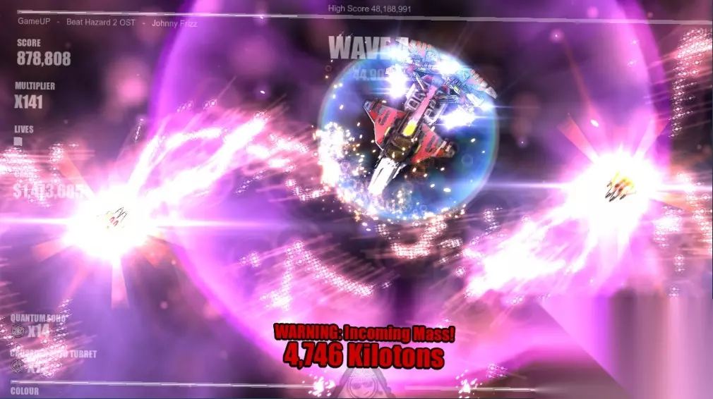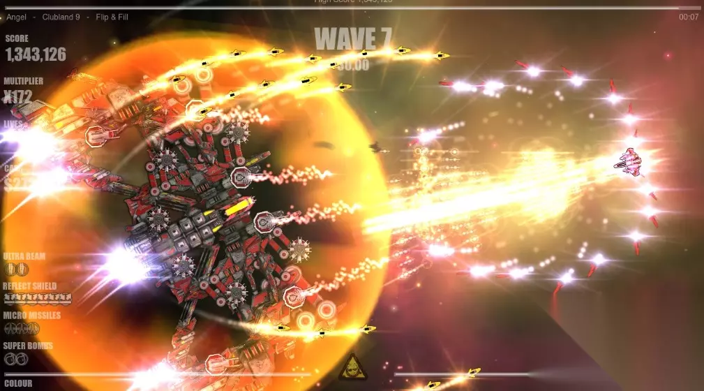 1、游戏战斗画面:还记得以前玩雷电战机的时光吗,而这款经过全面强化的 Beat Hazard 2 将让你体验到更加“爆炸”的战斗画面。
