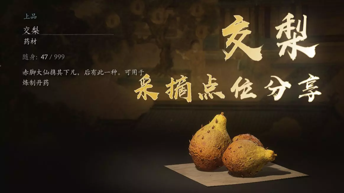 因为想拿全成就,做到最后就差一个交梨种子了,刷了半天没刷出来。遂录了个视频,以帮助其他想刷交梨的天命人。共五个地点,七个交梨。照鉴湖1个、安身寺1个、苦海北岸1个、罪业塔林1个、无忧涧3个。视频最后一段是快速刷新植物CD的教程。还望能帮到大家。