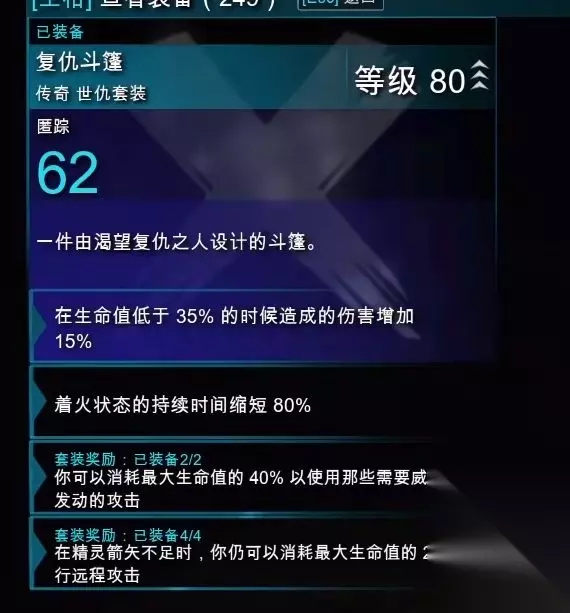 中土世界战争之影最强套装是世仇套装,也称复仇套装,它是一套传奇装备,包含复仇之剑、复仇匕首、复仇之弓、复仇护甲、复仇斗篷和复仇符文。