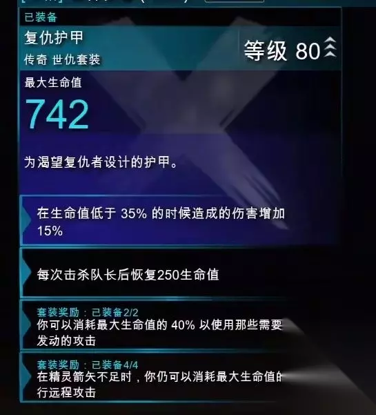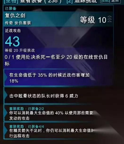 最强世仇套装属性一览: 1、复仇之剑