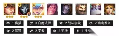 3、运营打法 3/2拉6六不D。当然如果不是连胜的情况下可继续攒钱,五十块钱吃利息就可以,慢慢拉人口不过4/1必拉七口做提升,因为大部分玩家这个时候都会做提升,或者有同行的话会被抢卡,不提升就被血入,D出体系卡,装备给厄加特直接锁血,金克丝不容易找而且难升二星所以先不急着给她留装备,七口开出四斗双枪锁血攒钱拉八口找金克斯和二星蒙多二星厄加特,当然锁不住血就不拉八,七口找出二星厄加特来锁血。看情况8口可上风女保护也可以单挂猫咪,看情况而定能拉九口可以挂个白魔或者单挂五费猫咪,我们还是比较缺控制的。 三、保镖狙神 1、阵容组成 女枪、烬、蕾欧娜、宝石、发条、布隆、猫咪、风女