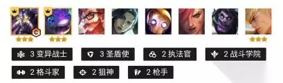 3、运营打法 走完连败后,3-2拉到6人口启动,开始大搜一波,场面羁绊凑出4刺客 3辛迪加,并且找到一张小丑即可。此时还不一定能完美锁血,因此在小丑没到两星前,都不能存钱,需要卡着30块利息D牌,尽快找到两星小丑。如果小丑到二时间比较早,可以在6人口时卡着50利息多搜几波,攒攒男刀与卡特的数量,如果小丑很晚才到二,那么就存钱先上7再搜。 五、圣盾大嘴 1、阵容组成 卡萨丁、大嘴、男枪、女警、机器人、蔚、蒙多、盖伦