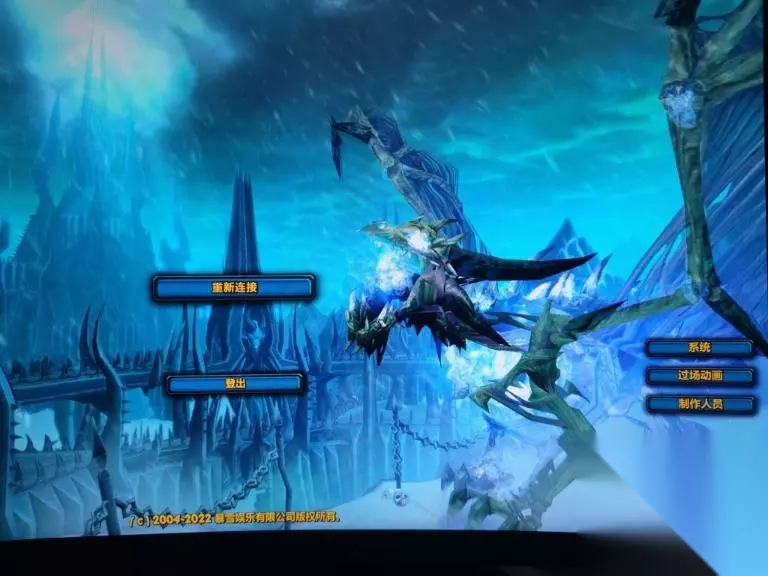 3、从此你的亡灵都是有骨头的,骨龙也不再是蓝龙的模型了!特别是到了WLK之后,冰龙的模型到处都有,这要是不反和谐的话你都分不清自己打的怪究竟是啥……反和谐后的登录界面的冰龙效果如图