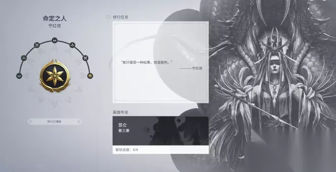 宁红夜作为核心角色之一,其修行任务体系是玩家深入了解角色战斗机制与背景故事的重要途径。修行任务分为七个阶段,每个阶段包含三个子任务,完成特定任务可获得古币、奇珍宝箱等奖励,并逐步解锁英雄徽章等级与传说故事。第一阶段初入聚窟要求使用1次昆仑决和赤练无明技能,并参与3场天选之人模式,奖励共计975古币及奇珍宝箱。