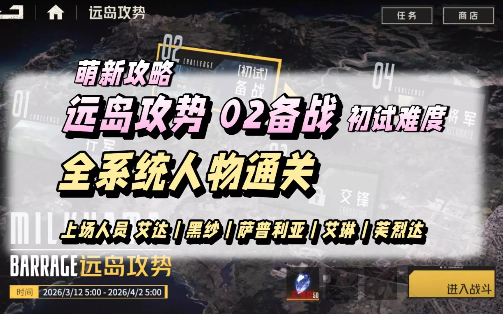 这是《钢岚》远岛攻势01行军初试难度的通关攻略,全程使用系统人物通关,是低战力玩家和萌新的福音,视频制作耗时45656秒,为玩家提供了该关卡的通关思路。