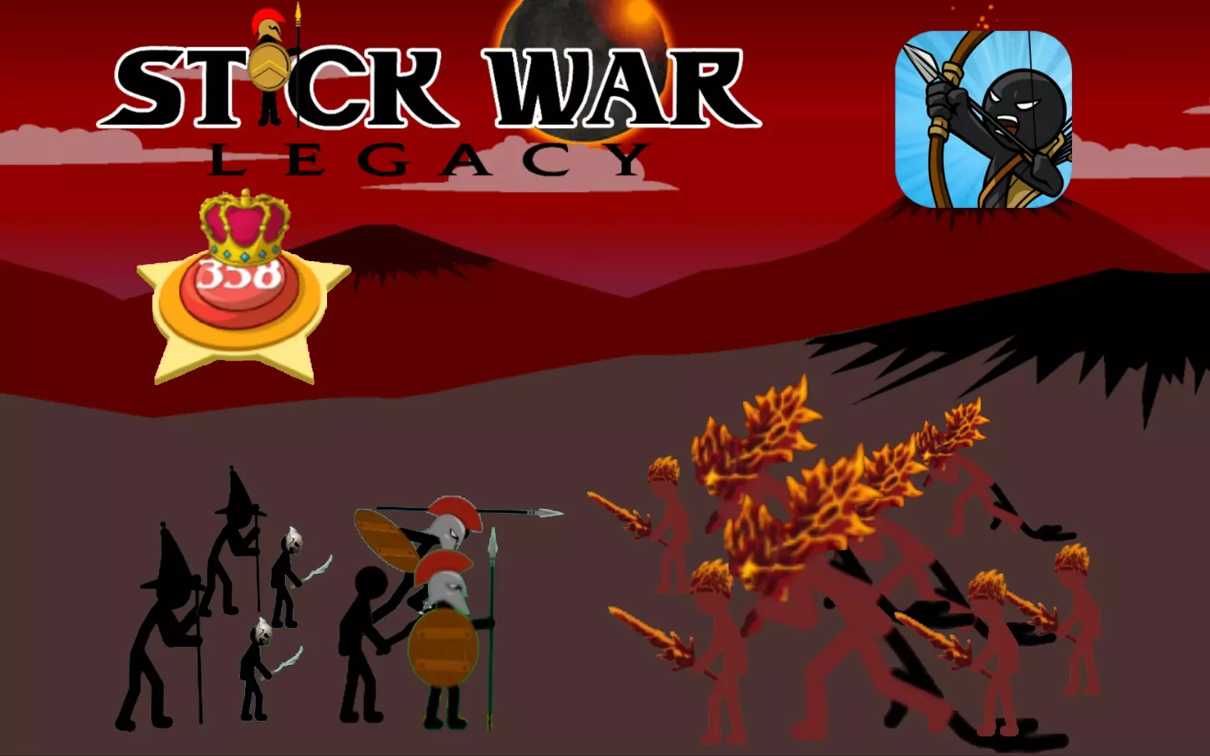 这是策略游戏《火柴人战争:遗产》的相关内容,发起提问:哪类兵种组合可以击败疯狂难度任务442里的野蛮猛击者,同时展示了不同兵种与野蛮猛击者对战的游戏画面。
