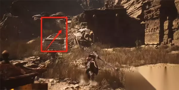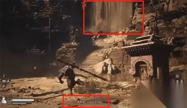 4、玩家需要点击查看,这样便可以清除覆盖在道路上的黄沙,露出通向BOSS的大门。