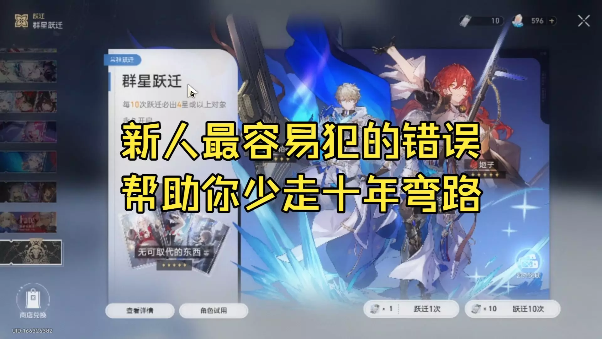 这是《崩坏:星穹铁道》的玩法演示帖,演示了在不开启艾丝妲相关内容的情况下,通过Alt+F4操作跳过艾丝妲,直接进入群星跃迁强制抽卡的操作方法。