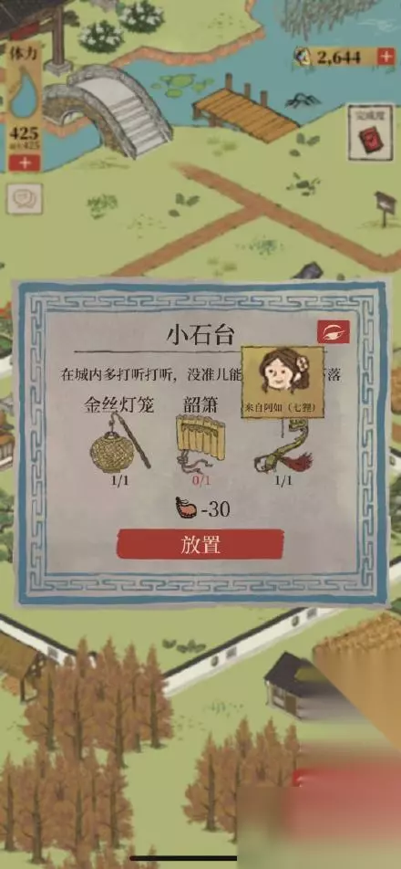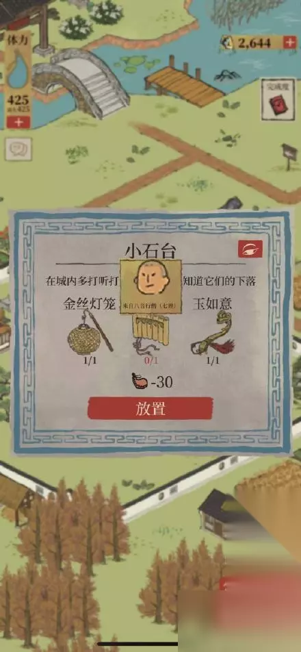 图12。13。点阊门城门进入回忆。阿朵站的码头。可以钓到木梳。(暂时还不知道干嘛用。)都做完比较费体力。带探险数值高的人去。 都找全了回去。然后告诉你在桃林最深处。今天做不完啦。其他线索要等。