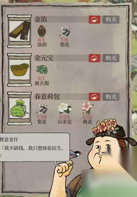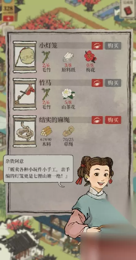 图9。10。11七里山塘有围墙门那边那个老板娘。有玉如意。她会跟你要春意荷包。在巽塔可以换。需要一些物资。