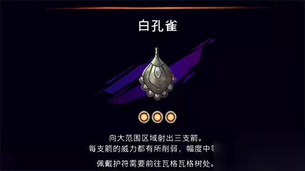 20.白孔雀 白孔雀护符能大范围射出三支箭,可以直接使用补伤害。白孔雀护符的获取方式是隐藏房间,位于沉港下部中心区域,一直往右到尽头之后往上就能获取该护符。 获取流程>>>白孔雀护符怎么得 白孔雀护符加成及获取攻略