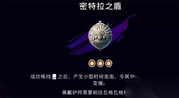 15.密特拉之盾 密特拉之盾这个护符很强力,能在成功格挡之后,产生小型时间泡泡,令其中所有敌人行动变缓。兵匠会给予玩家一个支线任务,叫做发掘远古力量,完成这个任务就能获取护符。 获取流程>>>密特拉之盾护符加成及获取攻略