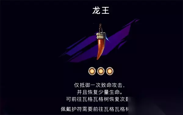 6.福佑 福佑护符,增加一定的生命值,并且需要在瓦格树才能恢复额外增加的生命值。福佑护符是游戏中第一个能获取的护符,跟着剧情必定能获取的。 获取流程>>>福佑护符怎么得 福佑护符加成及获取攻略