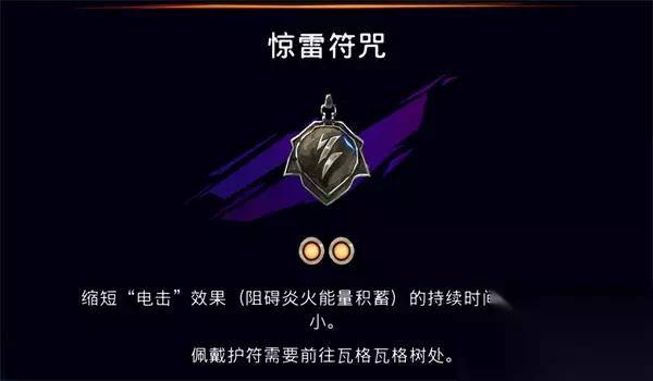 26.惊雷符咒 惊雷符咒的效果是缩短电击的持续时间,在面对有电击负面效果的BOSS可是能救命的。获取方式是开箱子,在深港地图上一个有大船标记的房间的正上方,跳到最后边的箱子开启就能获得该护符。 获取流程>>>惊雷符咒护符加成及获取攻略