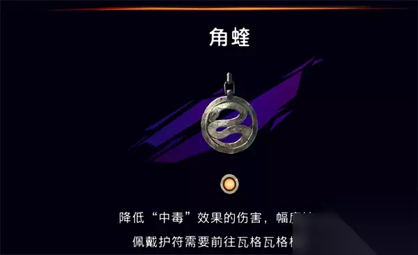 7.角蝰 角蝰的作用就是降低中毒效果的伤害,这个效果对于一些毒气区域很有帮助,想要佩戴还得跑到格瓦树,正好和福佑一起用了。卖护符的法师在刚才那个法师的右侧房屋,只需要125货币点就能购买角蝰。 获取流程>>>角蝰护符怎么得 角蝰护符加成及获取攻略