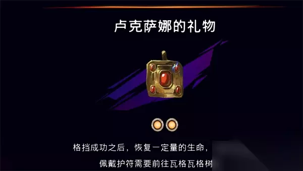 11.卢克萨娜的礼物 卢克萨娜的礼物格挡成功后能恢复一定生命值,这效果非常奈斯,打怪终于有续航了。获取方式是开箱子,在下城区左侧的狭长房间的下部区域就能看到藏着这护符的箱子。 获取流程>>>卢克萨娜的礼物护符加成及获取攻略