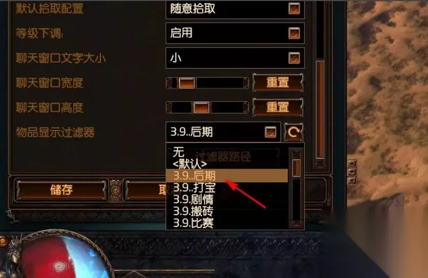 7、此时,在“物品显示过滤器”后的下拉列表中就出现了所有类型的过滤器,选择其中一个过滤器类型,点击“储存”就可以正常使用过滤器了。