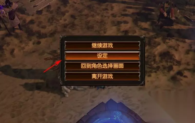 2、登录流放之路,在游戏界面中按下“ESC”键,在弹出的对话框中点击“设定”按钮,如下图所示。