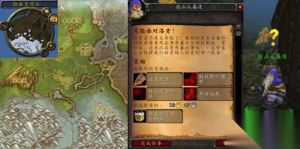 《魔兽世界》怀旧服wlk笑脸面对洛肯任务攻略 接取等级:73 接取NPC:巡山人基连(灰熊丘陵,勘探员哨站) 完成NPC:巡山人基连(灰熊丘陵,勘探员哨站) 奖励声望:无 任务开始: