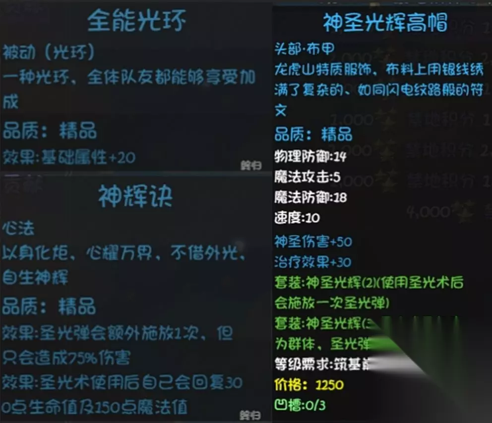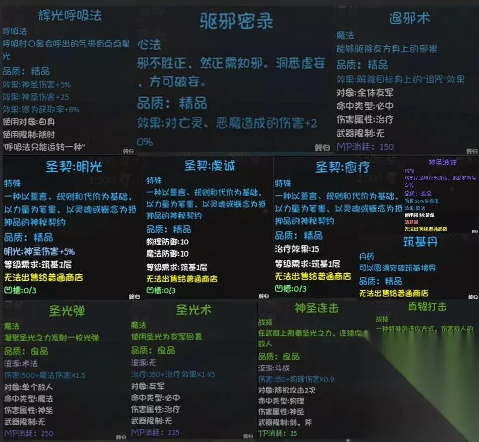 圣光教入门即可获得的东西,包括技能心法复活药