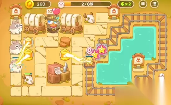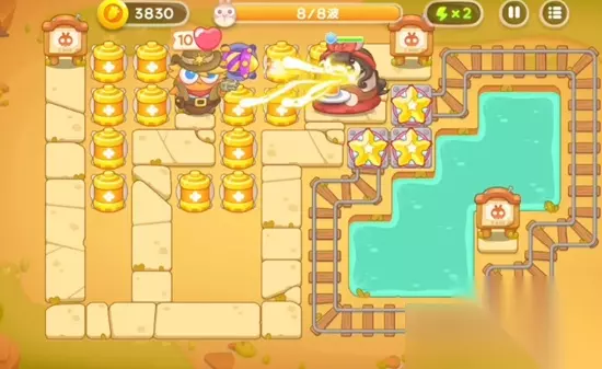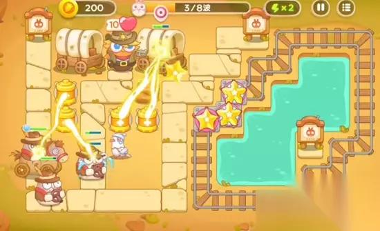 《保卫萝卜4》波仔很忙第31关满星图文攻略 1、在游戏开始时,在道路的中间位置建造负电塔,并在右边的移动格子上放置海星。