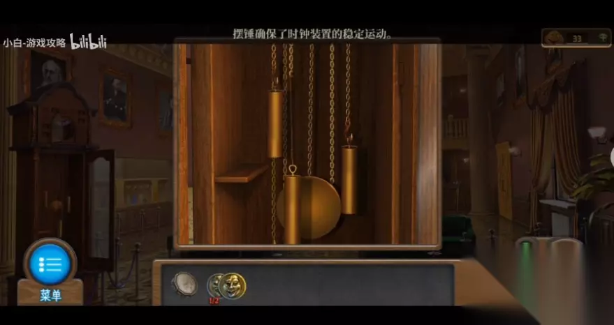215、回到更衣室,用钥匙打开更衣室的衣柜,在衣服里面的口袋里得到[镜头2],在衣服下面的地板上得到[沙袋3],在望眼镜上安装镜头,得到[双筒望远镜]。 216、回到客厅,将【钟的重量】安装在左侧的落地钟内,比较化妆镜上的灯,打开落地钟上的小方块,得到【暗示】。