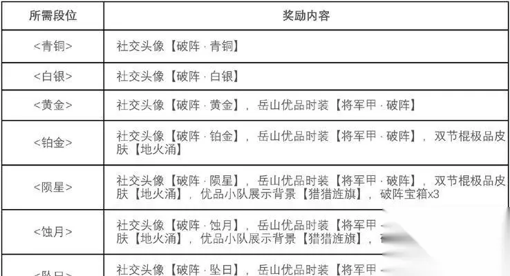 如何最大化获取赛季结算奖励? 1.了解游戏规则 在赛季开始前,了解游戏的结算机制和奖励系统至关重要。熟悉规则可以帮助你设定目标,提前规划如何达成这些目标。 2.制定策略 根据个人的游戏风格和习惯,制定一个合理的赛季目标和策略。专注于提升某项技能,或是尝试多种不同的游戏模式。 3.定期参与 保持定期参与游戏,不要错过任何获取奖励的机会。有些游戏的奖励是按时间发放的,错过可能就无法补回。 4.社区交流 加入游戏社区,与其他玩家交流心得和技巧。社区中的信息往往能帮助你更快地达成目标。