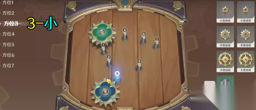 进入第三关后,玩家首先将方位三处选用小型齿轮,在方位五选用大型齿轮,方位七使用双层齿轮,方位六使用中型齿轮,方位四使用中型齿轮,然后切换至上层,这样就复原成功了。原神复原械画部件之三的奖励是六十个原石,三万个摩拉和三个武器突破材料。