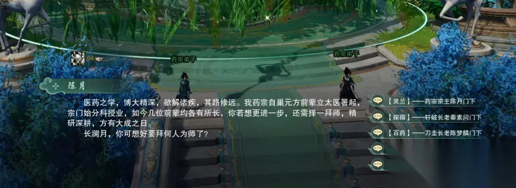 剑网三北天药宗称号全汇总! 30级后,掌门陈月就会让你选择拜入谁的门下。