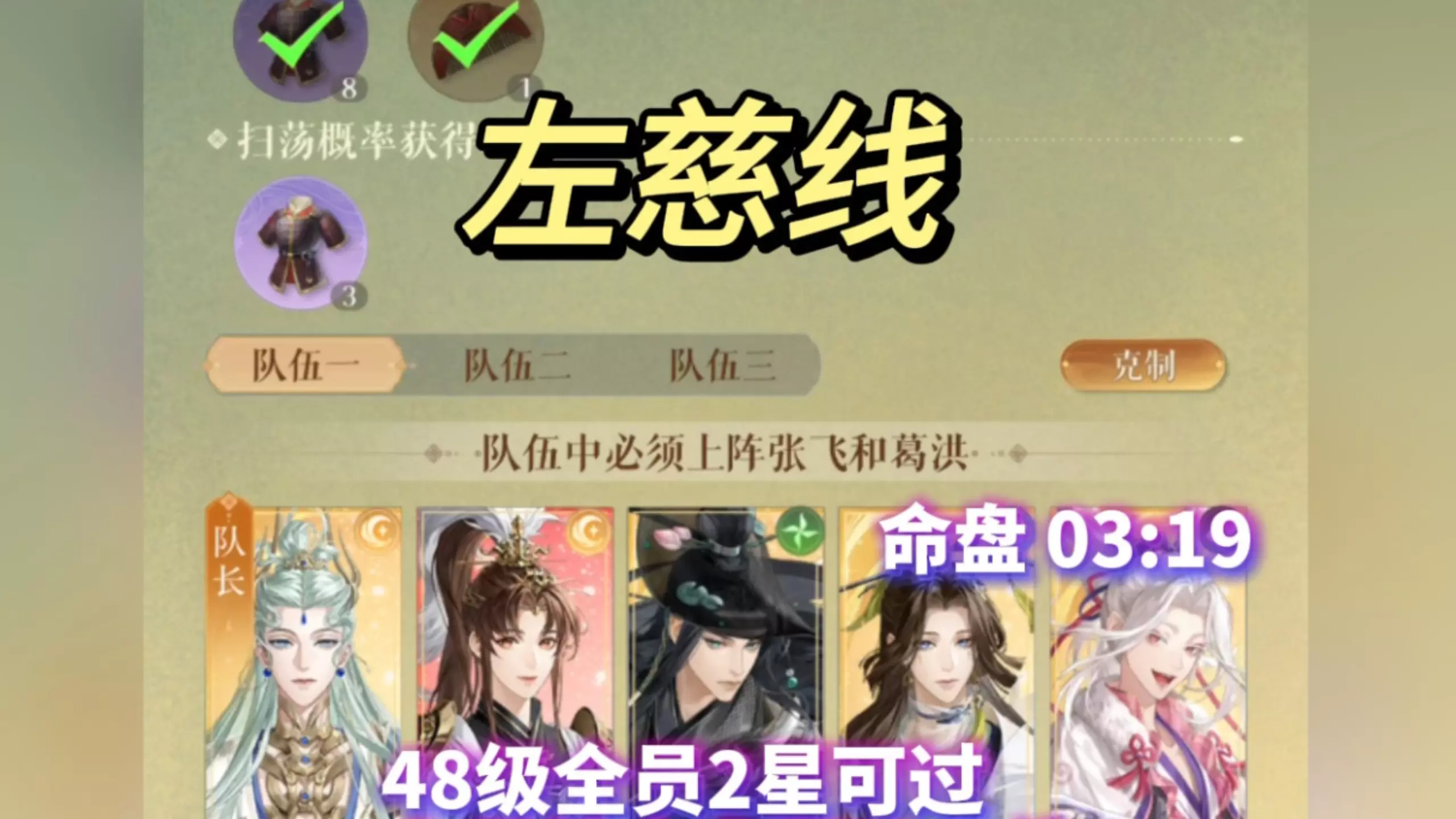 我说咋不对劲,血量翻倍了。 只能dot硬打了。 首选左慈线的,我是48级的时候过的,士燮二星,其他忘了,应该也是2星吧。 #如鸢 #七载相逢之秋 #里八华家主 …