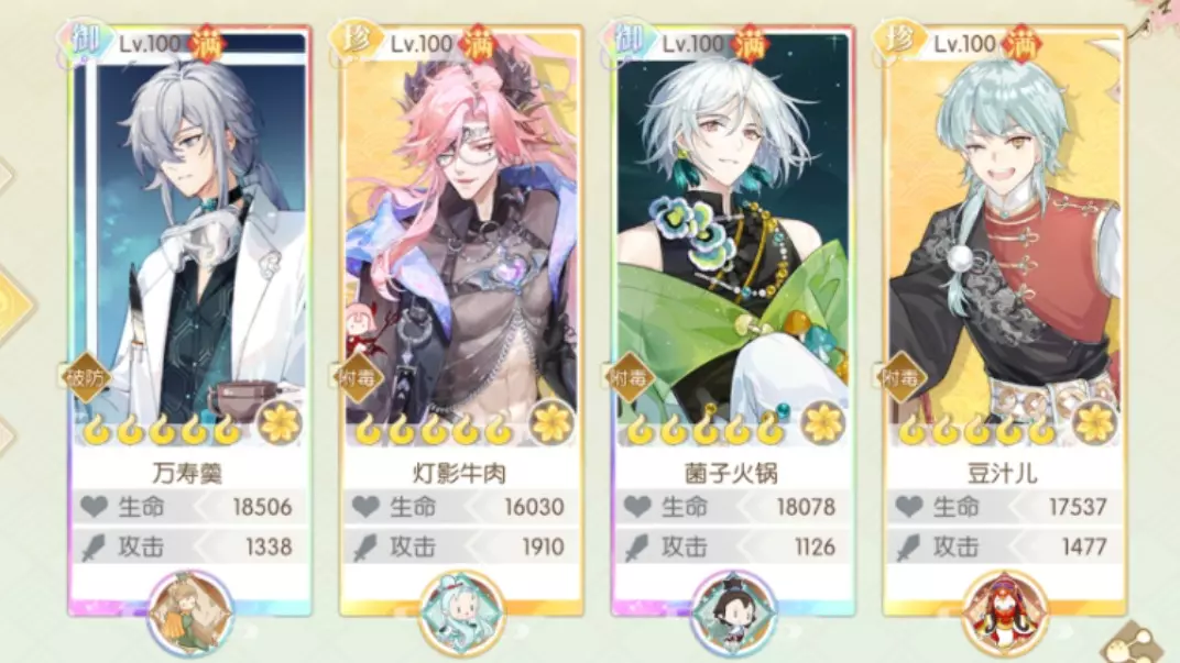 (万寿自回血+灯影青白玉吸血+菌子吸毒+豆汁治疗) 这是真能抗啊!我翻了新的防守记录,三四十级御品膳具或者四五十级珍品膳具的九品、海皇、双鱼、腰子、国主,三个以…