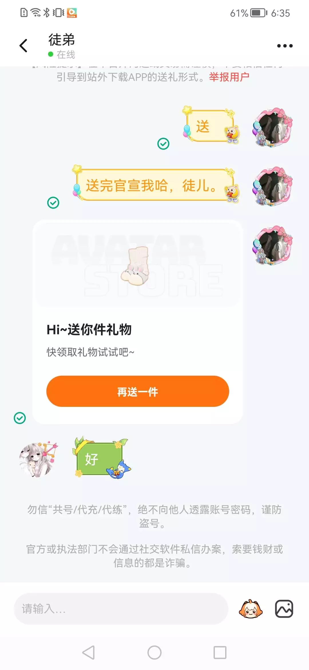 币已经送完了币,不能再来找我要礼物了哟。