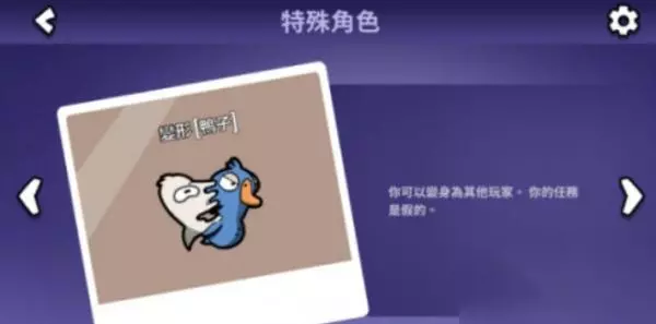 11.(废物三剑客)超能力/政治家/锁匠 超能力属于被动效果,目前而言的出场率不高,简单地说就是有几率让鸭子破坏失败。 政治家,平票时无法保送监狱。(只存在有监狱的地图) 锁匠,同政治家,只在监狱图出场,能随时开门(也许曾经是个小偷?) 12.复仇者 “所见即所得” 复仇者看见案发现场后就会获得带刀能力,包括鸭子、警长、正义使者在内,因为这个连锁反应,我们可以玩出很多花样来。 比如警长-复仇(正义的交接);正义-复仇(无序的双刀);鸭子-复仇(复仇/邪恶的双刀)包括复仇者也可以采用钓鱼执法(欺骗别人出刀,骗对骗错负全责哈) 13.模仿 随着玩家对游戏需求和玩法的进步,模仿的存在会越来越重要: ①在鸭子视角里会出现(从游戏开始,加入模仿的局中,鸭子会多看见一个“队友”,但模仿本人不知道谁是狼,其作用是——混淆狼人,并且!!模仿的出现会导致狼人存在互刀!!!可以互相刀!!)这一点上可以参考阿瓦隆中派西维尔知道梅林和莫甘娜的规则,但无法分辨(没玩过就当没说了QAQ) ②鉴于模仿本身是鹅(好人阵营),所以模仿视角里无法得知谁是鸭子,所以一般需要委曲求全(俗称上演无间道,而发言就是天台,谁是好人,谁是坏人,就听见刺客一声枪响——砰!) ③特殊性:走入迷雾(在丛林地图的迷雾中,模仿鹅同样可以进入。)当然狼人也可以穿模仿的身份,就是小心演技太好,骗过了队友QAQ 14.流浪儿童/跟踪器(古沙) 因为这两个职业属于古沙,目前还没免费开放,就不多赘述了。 流浪儿童参考锁匠,不过是从内部打开锁,就是关不住,也挺容易自证。 跟踪器则更简单,古沙地图的沙尘暴(特有),他能够看到沙尘暴时的在外活动者。 三、鸭子,狼人阵营,胜利条件:带走大鹅,人数冲票,或者最终环节完成坏人任务。 下面详细说下鸭子,作为坏人,鸭子那叫身怀绝技,各个都是人才!【狼人拥有自己的坏人任务,完成可以操控地图上的陷阱,四个类型,共享CD,比如关灯投食等,有效结合,可以帮助操作】(敲黑板)! ①鸭子关灯后视野不变,所以不要暴露,好人是看不见的。 ②鸭子死后是可以继续做任务的,也可以操作陷阱,帮助你的队友,或者成为幽灵狼获胜吧!常见的鸭子一般是:专业杀手,刺客,炸弹,静音,忍者……