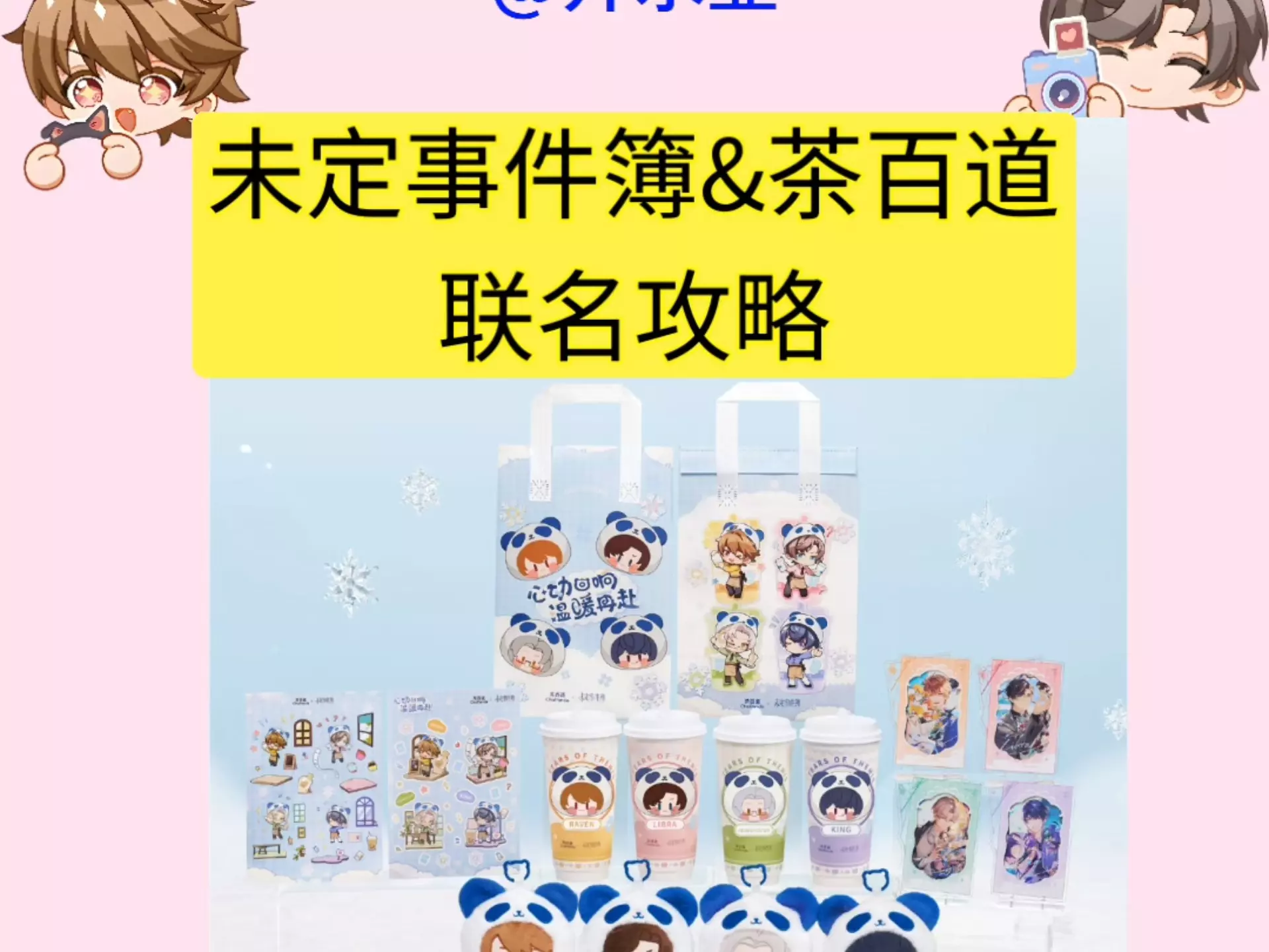 下周联名周边有哪些 by肉肉吃吃 近期已上 月鳞绮纪一系列联动 三福x十日终焉 新谷 肯德基x三丽鸥x小马宝莉 麦当劳x马里奥 第五人格x海底捞 攻略已出 华莱士x时光代理人 攻略已出 如鸢x闪魂 上海快闪 元气森林x王者荣耀 可爱多x蛋仔派对 香飘飘MecoxTNT时代少年团 光夜x三丽鸥 二期 4.6 寿司郎x喜羊羊与灰太狼第一弹 4.7 库迪x一人之下 4.8 x茶xKitty第二弹 4.10 挪瓦咖啡x银魂 早鸟 恋与制作人x粉红兔子预约 一梦江湖x广东粤剧院 恋与深空x芬达 上海快闪 鸣潮x阿奇侬 台 不上大陆 麦当劳x三丽鸥 日本 国内不上 4.11 x茶xKitty第二弹 4.15 花亦山心之月xhobbywon 玩偶 4.26 杭州chiikawa 长期联名活动 3.20-5.31 原神x环球影城 攻略已出 3.28-6.21 一人之下x欢乐谷 4.3-6.14 剑网三xgoodslove主题餐厅 4.17~5.10 恋与制作人x粉红兔子上海快闪 4.25~6.14 异人之下北京原画展 时间待定 xx辣酱x世界之外 贪吃蛇大作战x我家大师兄脑子有坑 二哈x非遗绒花