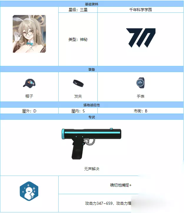 技能介绍 1、精心地准备: EX技能:设置地雷,当敌人进入范围内时,地雷会自动引发爆炸,对敌人造成攻击力351%~667%的伤害(地雷存在时间为90秒)。