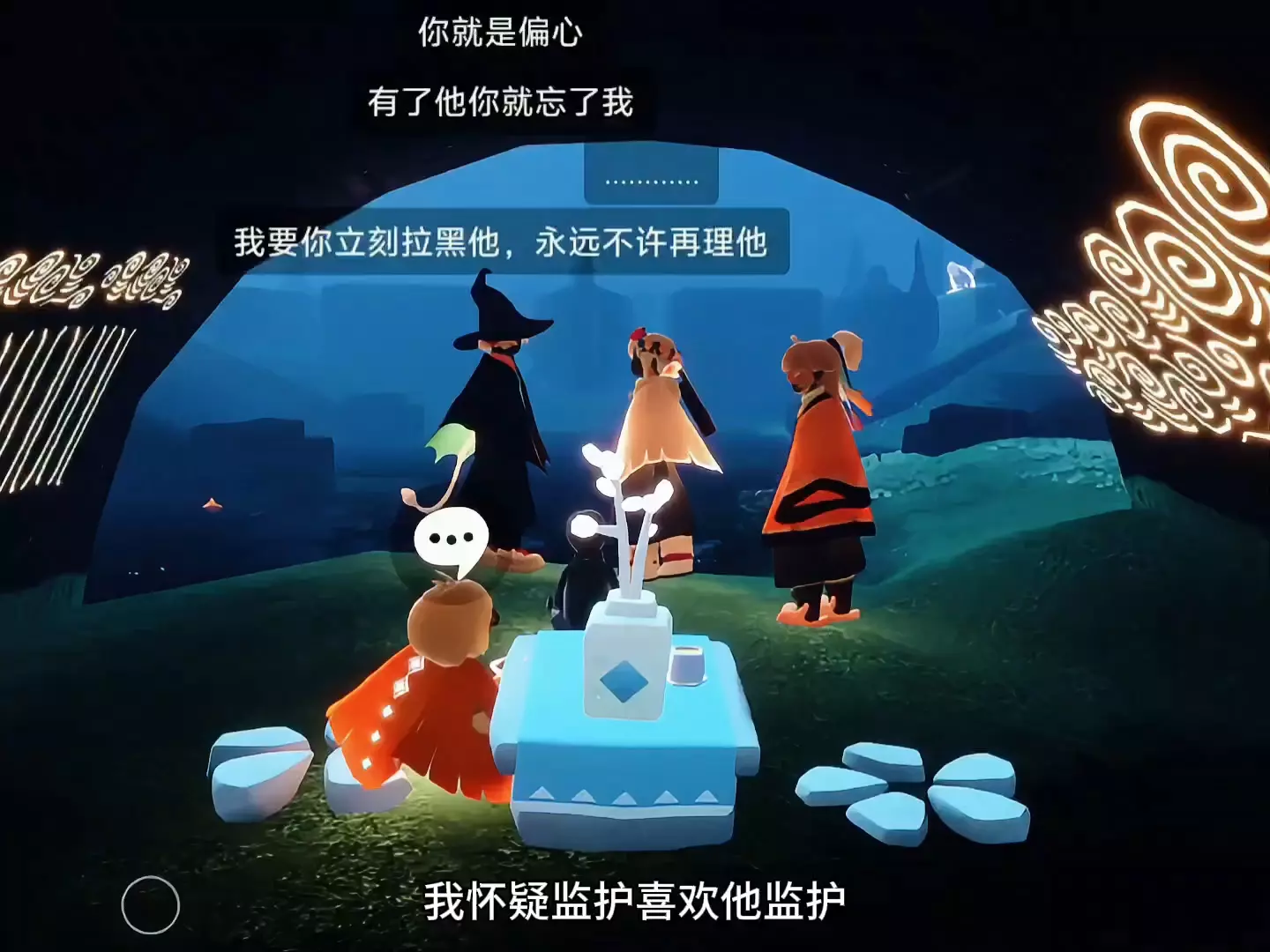这是《光遇》的直播录像,直播间里玩家围绕“花50买号当孩子养”展开对话,还有玩家提议让无翼角色坠机,同时直播间还有监护相关的招募信息。