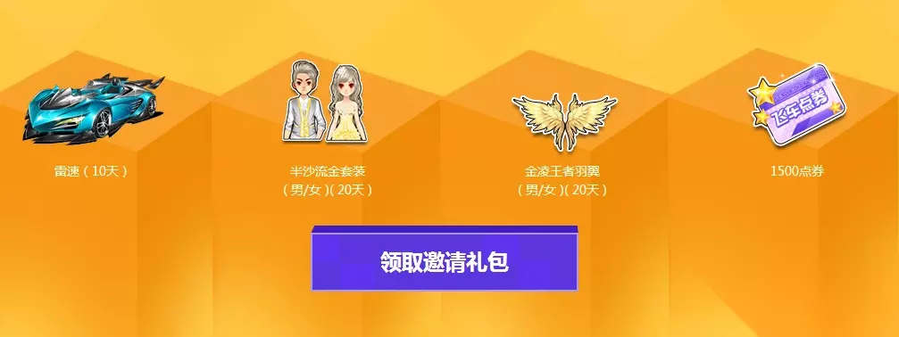 超级回归礼 活动时间:长期活动 一、邀请玩家超级见面礼 成功邀请好友并且受到好友绑定,即可领取邀请玩家超级见面礼 (没有被绑定的玩家,可以参加该页面其他模块的活动哦~极品A车等你拿)