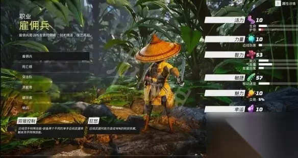 1.雇佣兵 这是一种较为均衡的双持近战职业,拥有一定的生存能力。作为重装型职业,其基础护甲值较高。