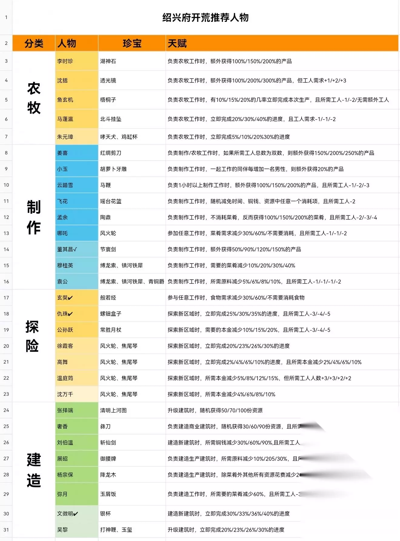 二、推荐人物 加成效果是2小时以上农牧、制作工作掉落名贵珍珠;1小时以上理财工作掉落碎银。推荐人物有杜言行、阮籍、祝枝山。 绍兴府掉落资源里,张择端+专珍清明上河图能松江建改良农田;张择端没专珍则应天升级农田,一个能升两级。 文俶在应天刷农田第一档,餐馆做饭用第一档既能消耗蔬菜又能做饭。