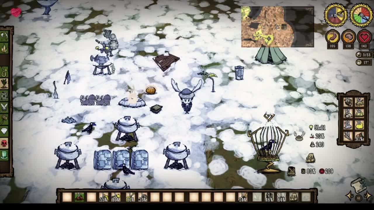 这是一篇关于《饥荒联机版》的帖子,展示了游戏内冬天制作暖石、收集过冬材料、检查海象营地等生存操作,还附带了对up主视频内容的趣味吐槽。