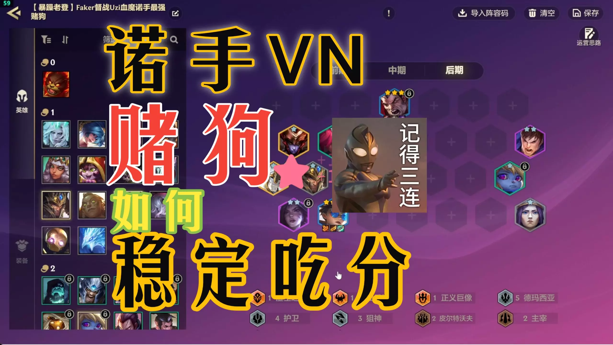 根据前期的过渡,能上八选择运营阵容;连败就选择赌狗阵容苟分