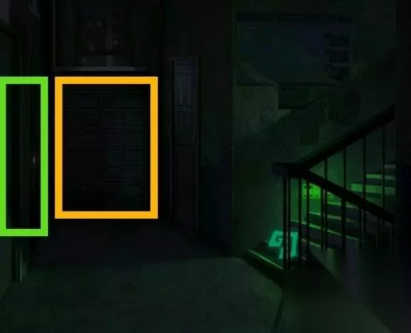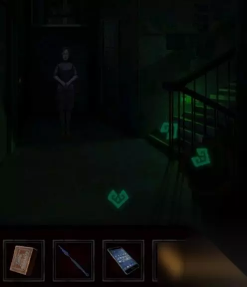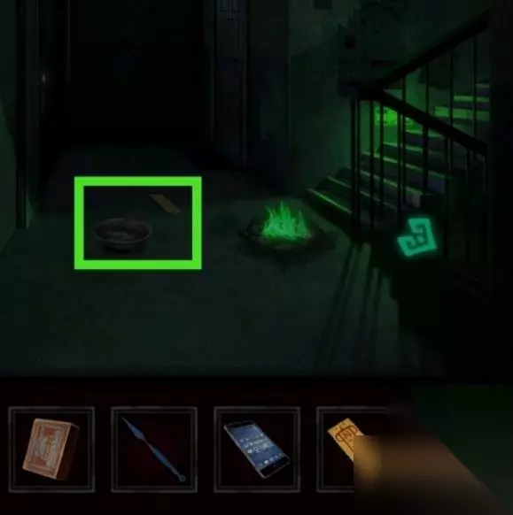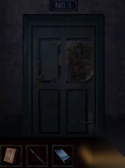 8、成功手机游戏后取得手机上,去楼梯道掏出手机,出现一个老人,选没被遮挡的道路向前,赶到3楼,撕下贴门神图。