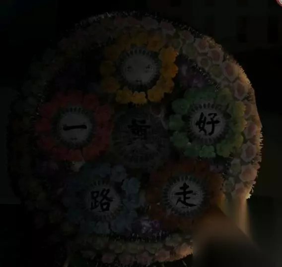 15、点一下右侧那车前面的小箱子,去灵棚焚烧处理纸马,使用密码:8265,开启左边的木柜。