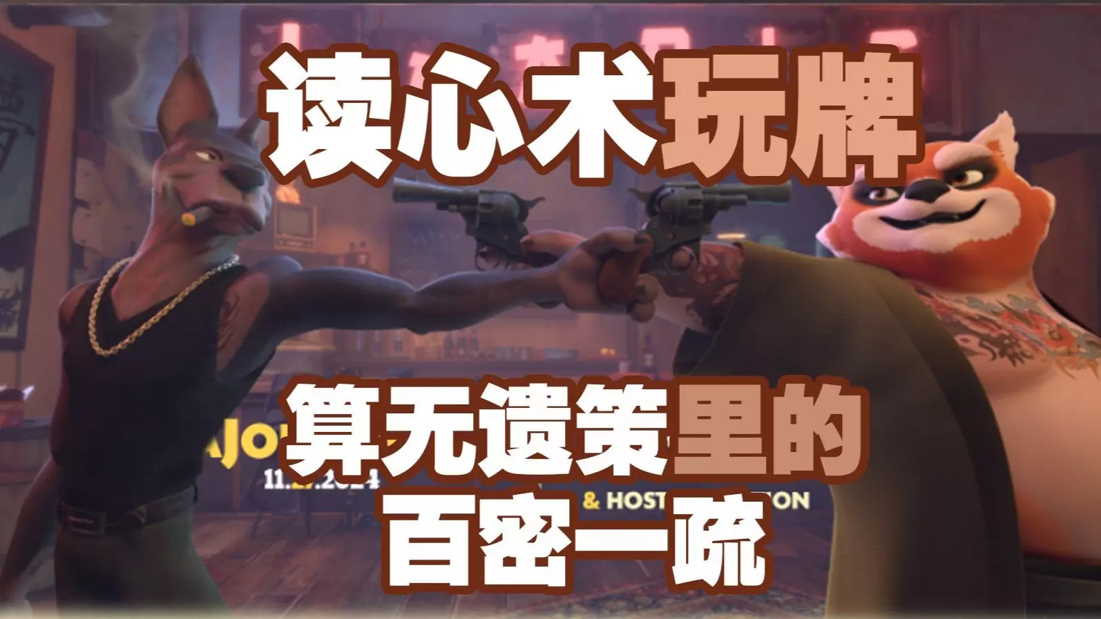 这是游戏《骗子酒吧》更新后的内容展示,呈现了酒吧内的卡牌对局场景,能看到特色的动物角色、桌上的枪械与卡牌,还显示了牌组构成,展现了该游戏独特的博弈玩法。