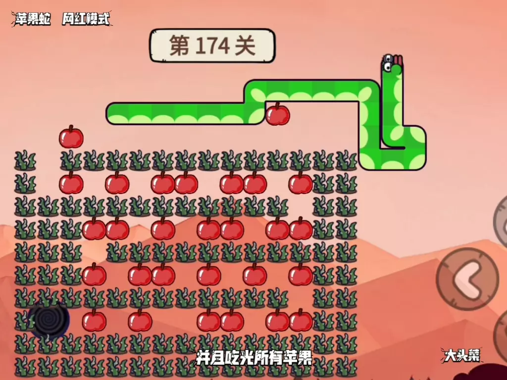 这是小游戏苹果蛇网红模式第11关的攻略,利用关卡里的立柱就能吃光所有苹果,这个立柱是顺利过关的关键。